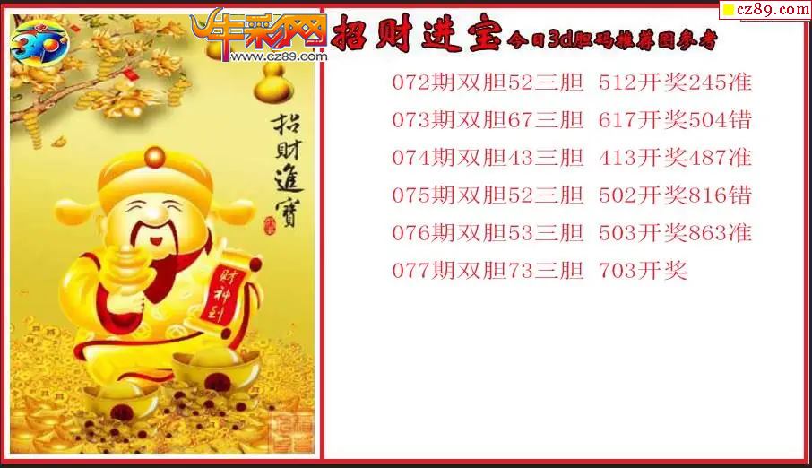 首页 > 福彩3D图谜 > 26年077期3d 招财进宝今日胆码推荐图参考